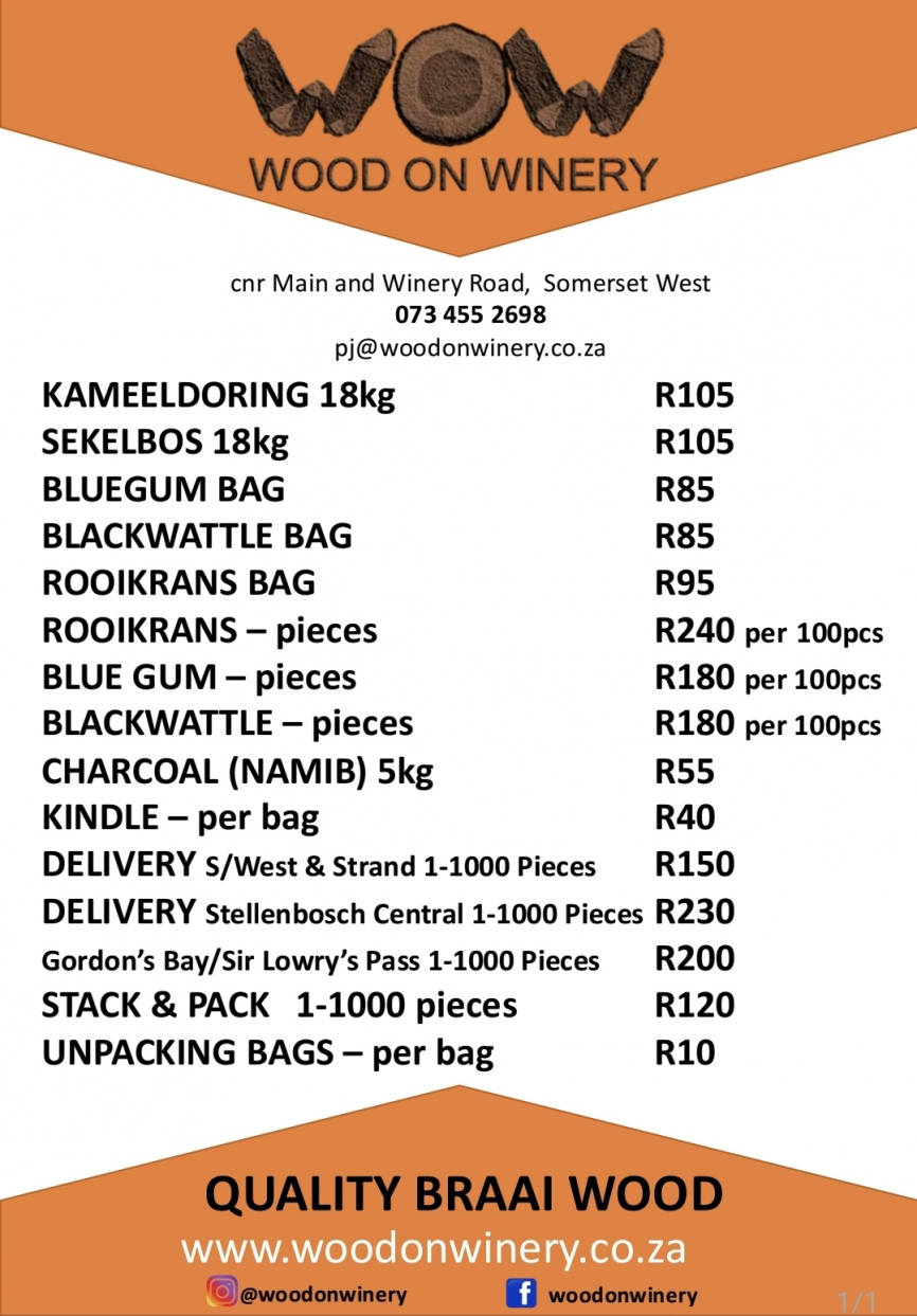 Being hands-on in the business we strive to offer not just good quality wood, but also great consistent service to the Helderberg and surrounding areas.
